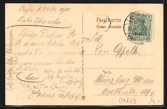 alte Ansichtskarte, gelaufen 1911, Stempelspur, guter Zustand