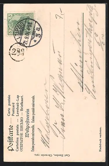 alte Ansichtskarte, gelaufen 1904, Eckknick li. unten, guter Zustand