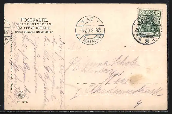 alte Ansichtskarte, gelaufen 1907, Randschäden li., Stempelspur, guter Zustand