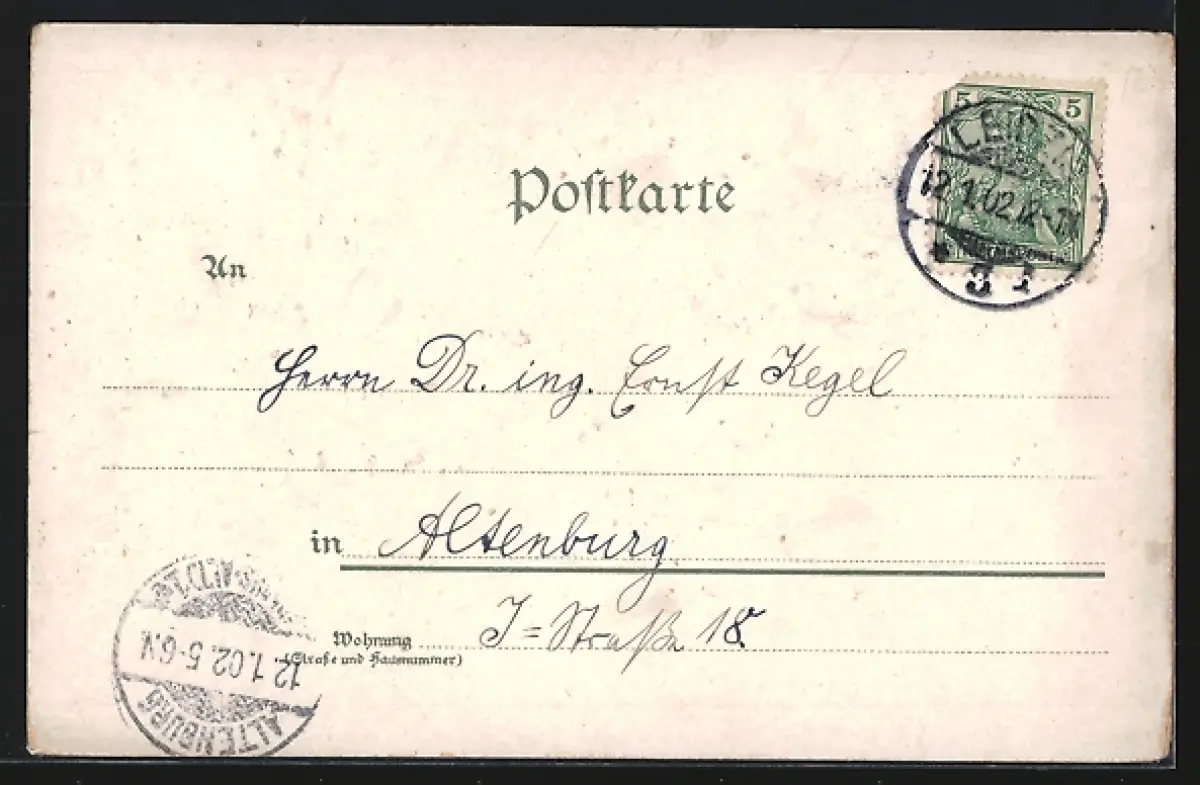alte Ansichtskarte, gelaufen 1902, Eckknick li. oben, Stempelspur, guter Zustand