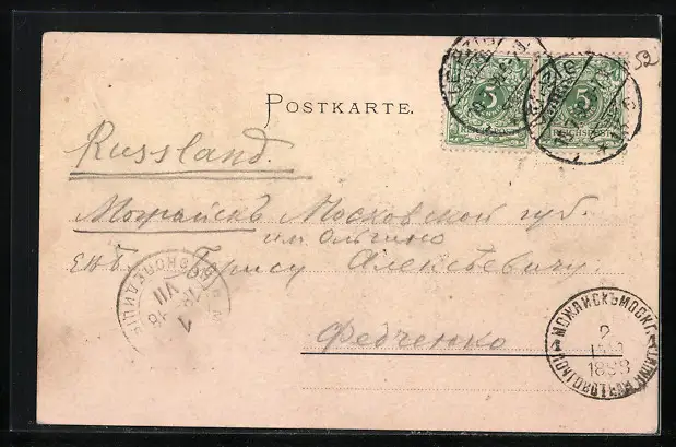 alte Ansichtskarte, gelaufen 1898, Eckknick oben re., guter Zustand
