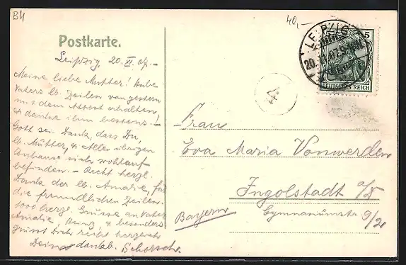 alte Ansichtskarte, gelaufen 1907, Stempelspur, guter Zustand
