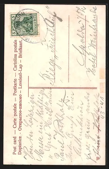 alte Ansichtskarte, gelaufen, rückseitig Klebe- und Papierreste, guter Zustand