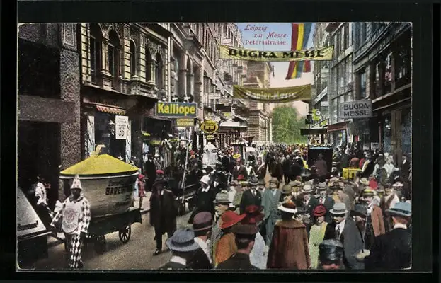 AK Leipzig, Petersstrasse während der Messe, mit Werbe-Aktionen
