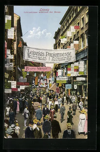 AK Leipzig, Petersstrasse während der Papiermesse