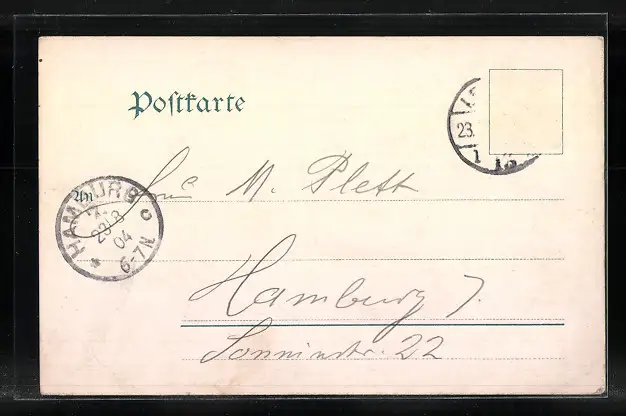 alte Ansichtskarte, gelaufen 1904, Briefmarke entfernt, Eckknicke unten, Bugspur re. unten, guter Zustand
