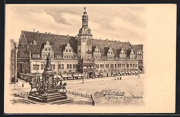 AK Leipzig, Rathaus mit Sieges-Denkmal