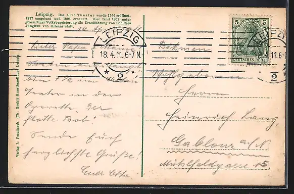 alte Ansichtskarte, gelaufen 1911, Eckknick li. oben, Stempelspur, Abriebspur li. oben, guter Zustand