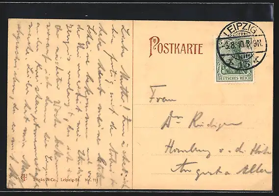 alte Ansichtskarte, gelaufen 1910, Stempelspur, guter Zustand
