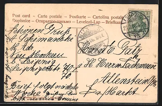 alte Ansichtskarte, gelaufen 1906, Eckknick rechts oben, guter Zustand