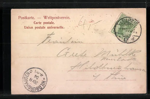 alte Ansichtskarte, gelaufen 1904, Eckknicke unten, guter Zustand