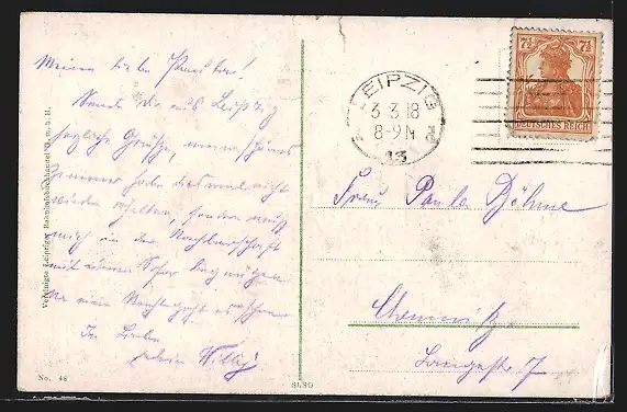 alte Ansichtskarte, gelaufen 1918, Stempelspur, minimale Einrisse oben mittig, guter Zustand