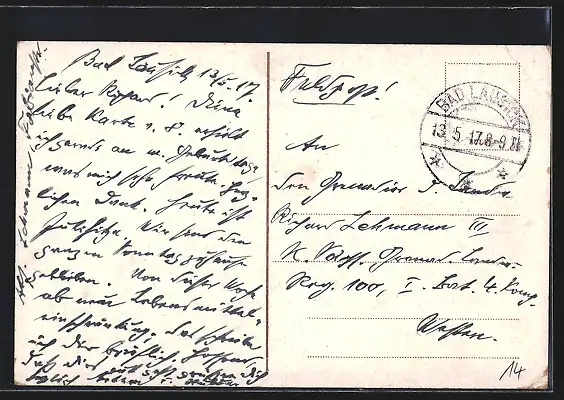 alte Ansichtskarte, gelaufen 1917, Eckknicke li., guter Zustand