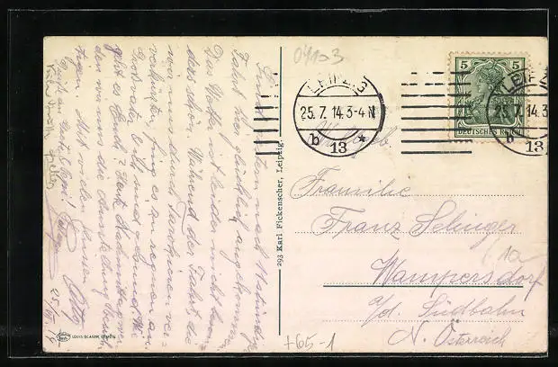 gelaufen 1914, Eckknick li. oben, guter Zustand