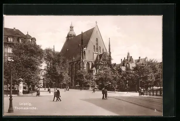 AK Leipzig, Strassenpartie mit Thomaskirche