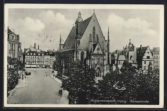AK Leipzig, Thomaskirche mit Strassenpartie