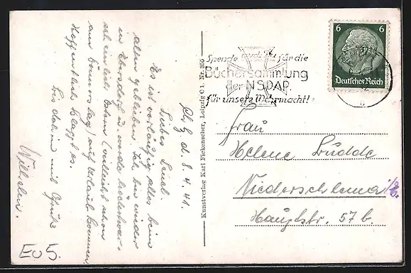 alte Ansichtskarte, gelaufen 1941, Stempelspur, guter Zustand
