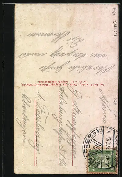 Personenbezogene Daten auf der Rückseite der Karte wurden durch blauen Textmarker unkenntlich gemacht. Die blauen Stellen sind auf die Vorderseite durchgeweicht und wirken sich negativ auf das Postkartenfoto aus