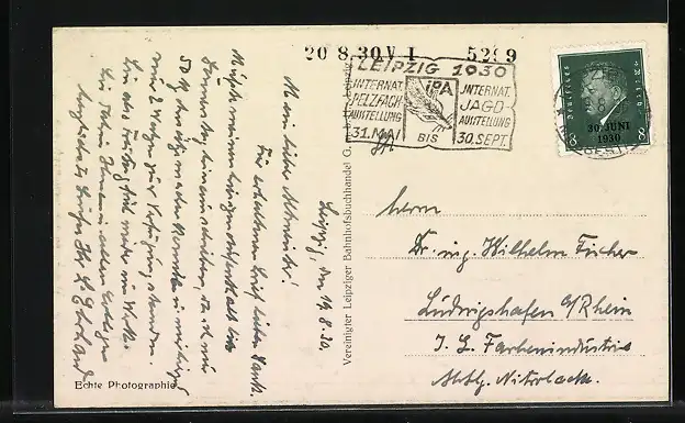 alte Ansichtskarte, gelaufen 1930, guter Zustand