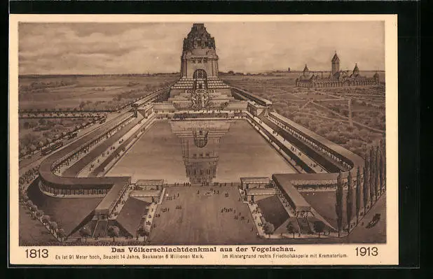 AK Leipzig, Völkerschlachtdenkmal aus der Vogelschau
