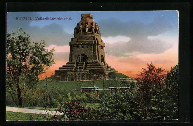 AK Leipzig, Völkerschlachtdenkmal hinter Promenadenweg