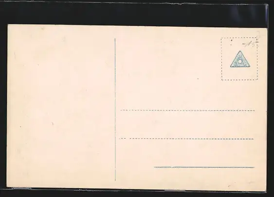 Personenbezogene Daten auf der Rückseite der Karte wurden durch blauen Textmarker unkenntlich gemacht. Die blauen Stellen sind auf die Vorderseite durchgeweicht und wirken sich negativ auf das Postkartenfoto aus
