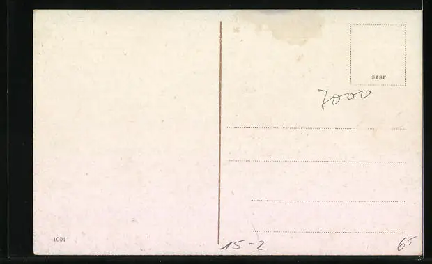 Personenbezogene Daten auf der Rückseite der Karte wurden durch blauen Textmarker unkenntlich gemacht. Die blauen Stellen sind auf die Vorderseite durchgeweicht und wirken sich negativ auf das Postkartenfoto aus