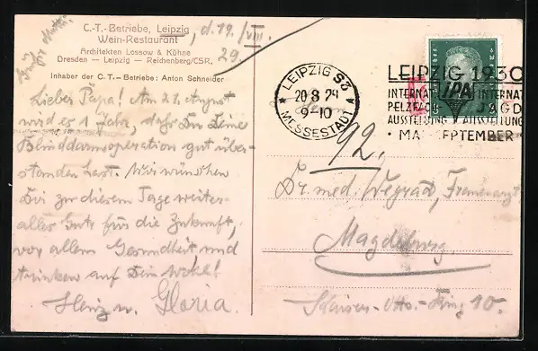 AK Leipzig, Wein-Restaurant C.-T.-Betriebe, Innenansicht