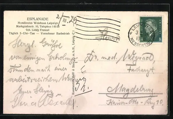 AK Leipzig, Weinhaus Esplanade, Inh.: Liddy Frenzel, Markgrafenstrasse 10