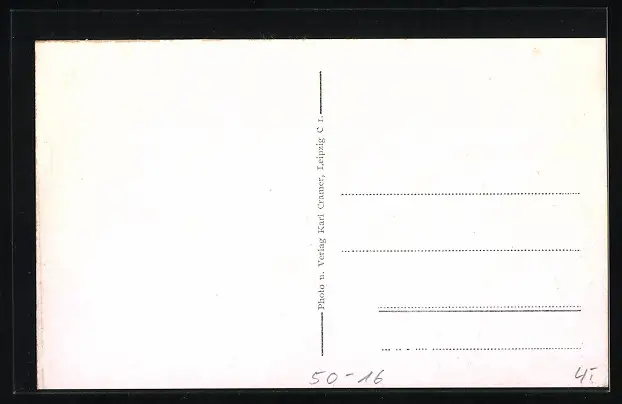 Personenbezogene Daten auf der Rückseite der Karte wurden durch blauen Textmarker unkenntlich gemacht. Die blauen Stellen sind auf die Vorderseite durchgeweicht und wirken sich negativ auf das Postkartenfoto aus
