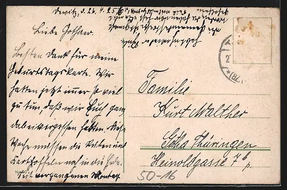 alte Ansichtskarte, gelaufen, Briefmarke entfernt, guter Zustand