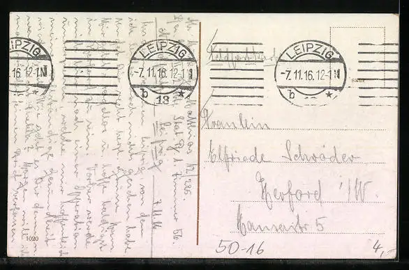 alte Ansichtskarte, gelaufen 1916 als Feldpost, Eckknick unten li., Stempelspur, guter Zustand