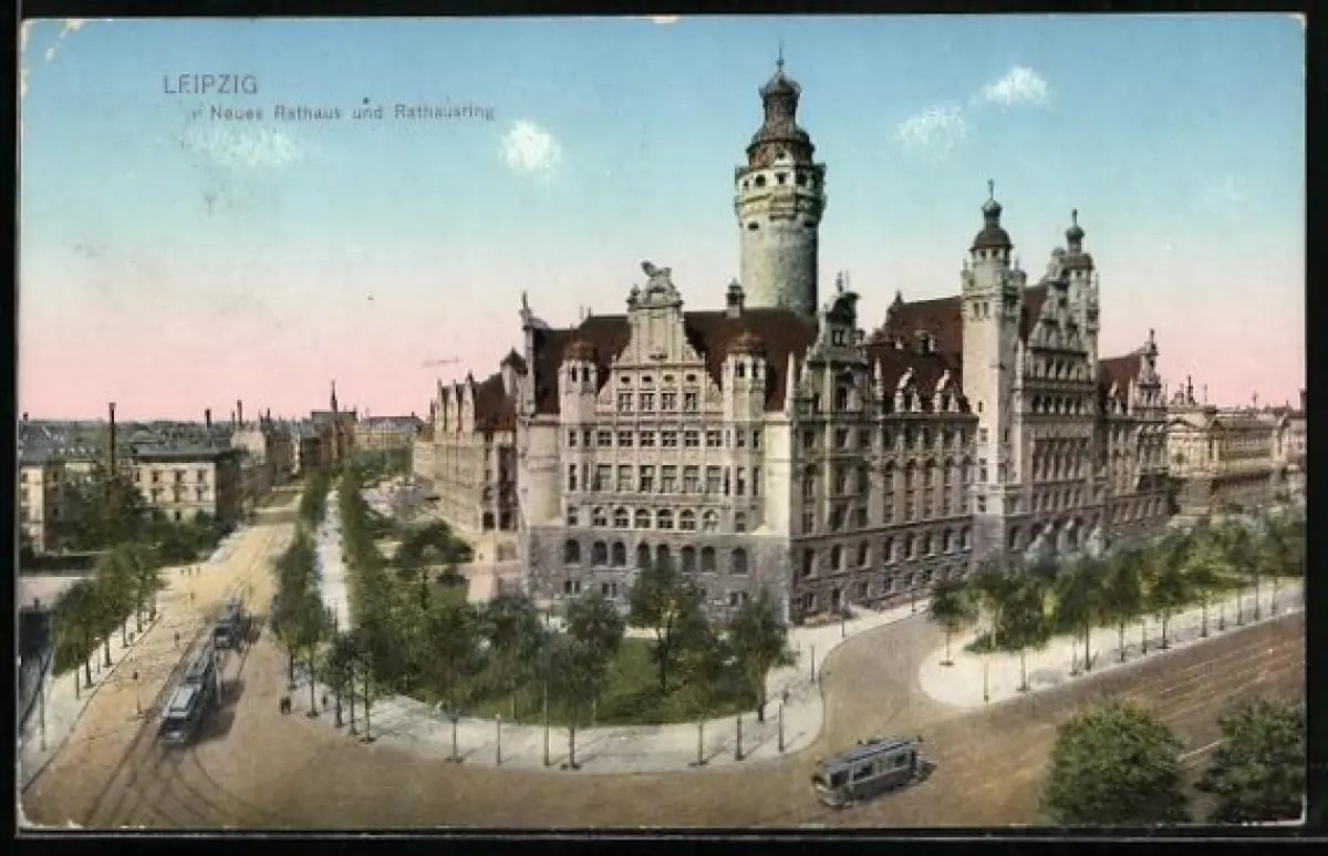 AK Leipzig, neues Rathaus und Rathausring, Strassenbahnen