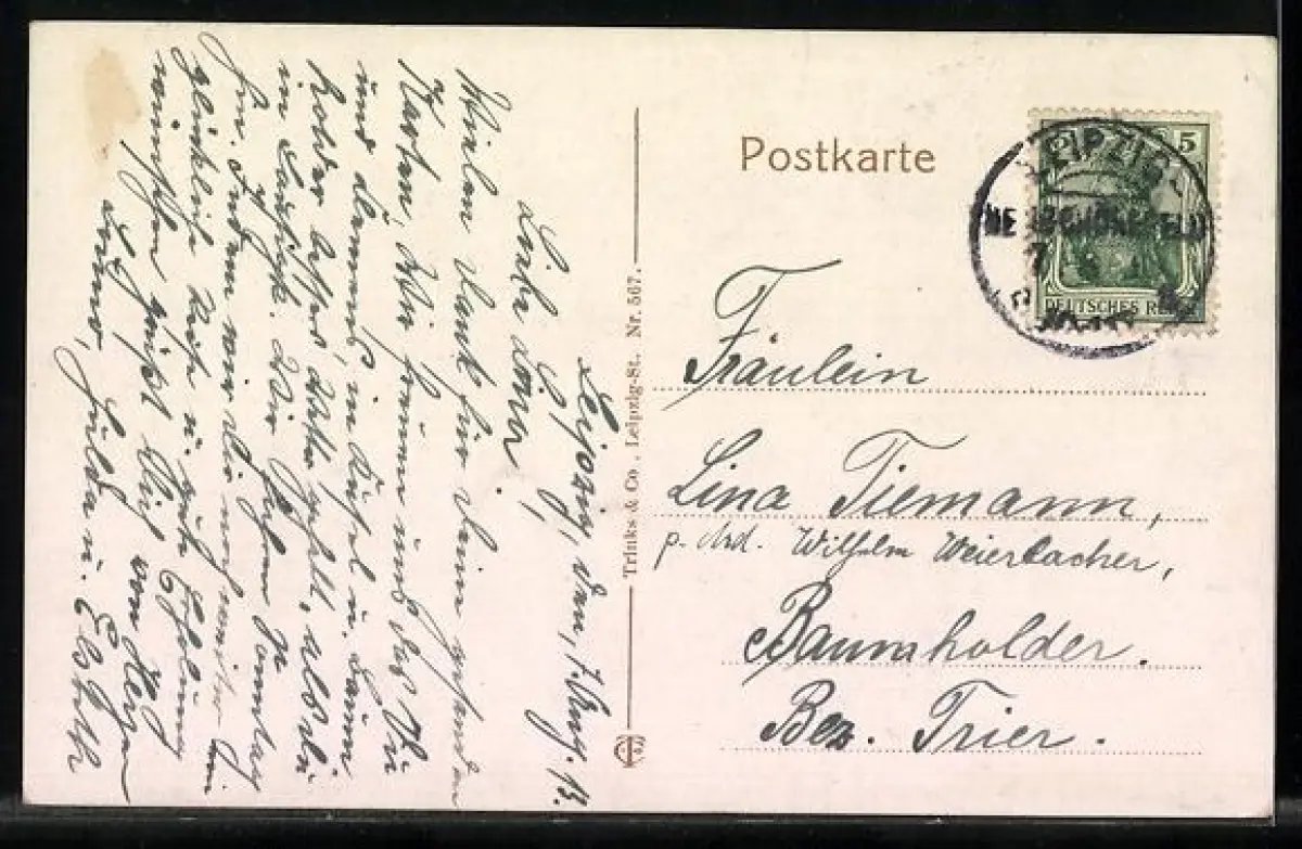 alte Ansichtskarte, gelaufen 1913, Eckknick oben li., guter Zustand