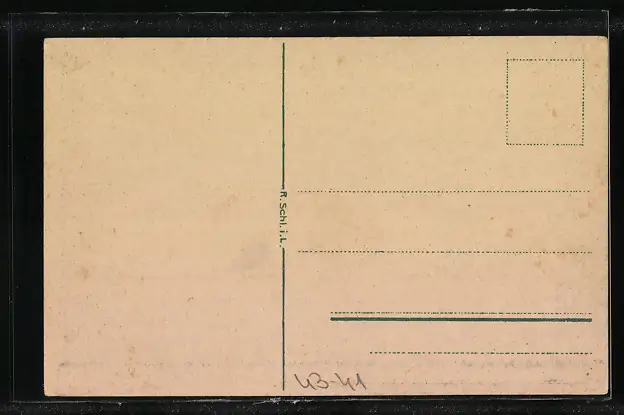 Personenbezogene Daten auf der Rückseite der Karte wurden durch blauen Textmarker unkenntlich gemacht. Die blauen Stellen sind auf die Vorderseite durchgeweicht und wirken sich negativ auf das Postkartenfoto aus