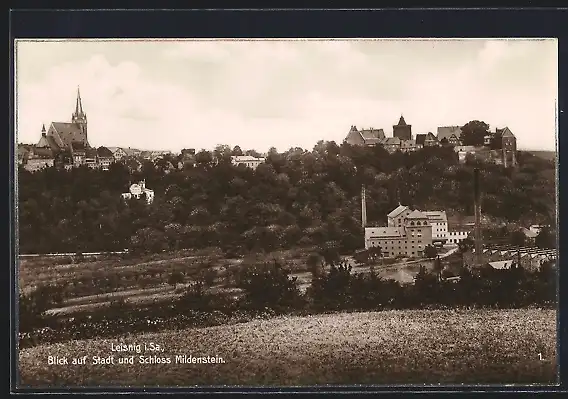 AK Leisnig i. Sa., Blick auf den Ort und Schloss Mildenstein