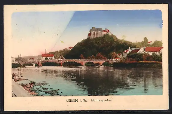 AK Leisnig i. Sa., Muldenpartie mit Schloss