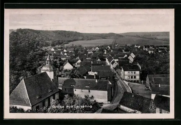AK Leissling, Teilansicht mit Kirche und Strassenpartie