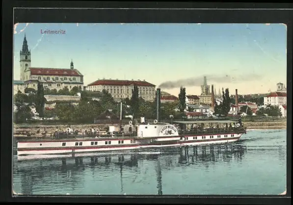AK Leitmeritz / Litomerice, Dampfschiff Kaiser Wilhelm vor der Stadt