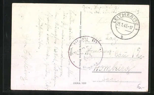 alte Ansichtskarte, gelaufen 1943 als Feldpost, Eckknick li. oben, guter Zustand