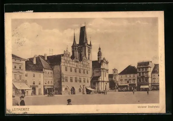 AK Leitmeritz, Unterer Stadtplatz mit Konditorei-Cafe