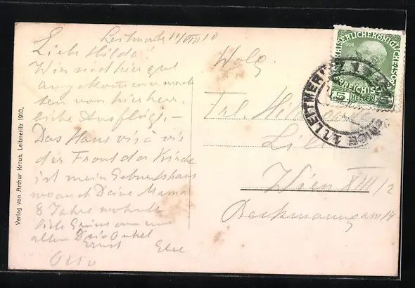 alte Ansichtskarte, gelaufen 1910, Eckknick re. unten, Stempelspur, guter Zustand