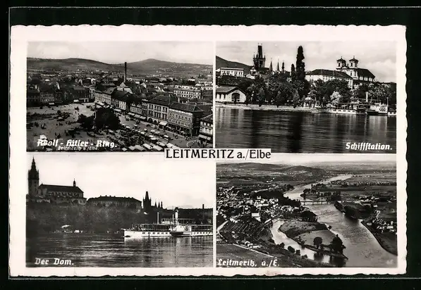 AK Leitmeritz a. Elbe, Ring, Schiffstation, Dom