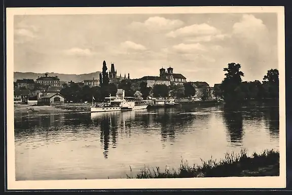 AK Leitmeritz a. Elbe, Uferpartie mit Dampfern