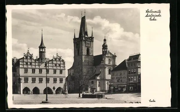 AK Leitmeritz a. d. Elbe, Marktplatz mit Rathaus