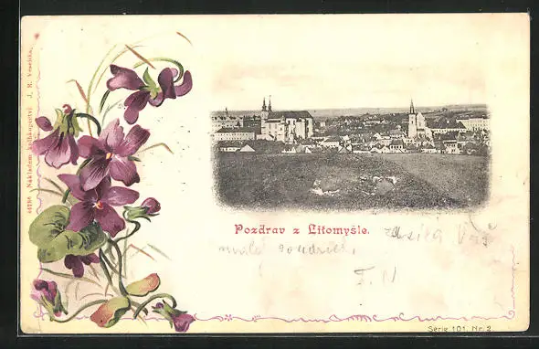 AK Leitomischl / Litomysl, Celkovy Pohled, Blumenschmuck