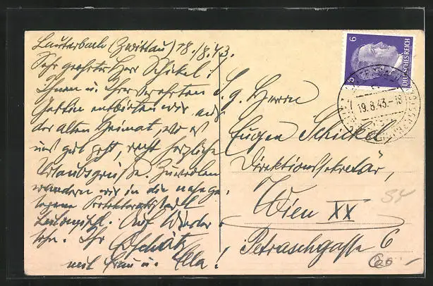 gelaufen 1943, Stempelspur, sonst guter Zustand