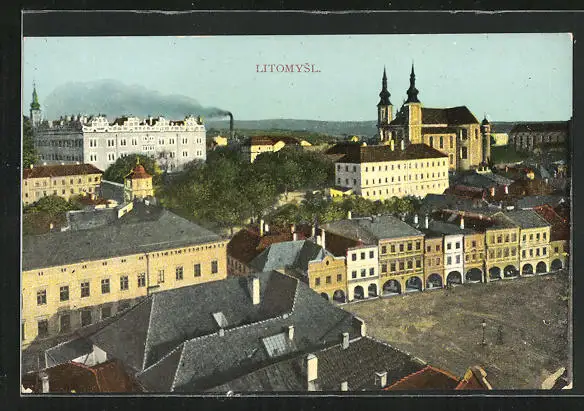 AK Leitomischl / Litomysl, Ortspartie mit Kirche