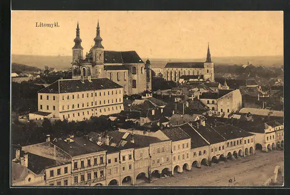 AK Leitomischl / Litomysl, Strassenpartie mit Kirche
