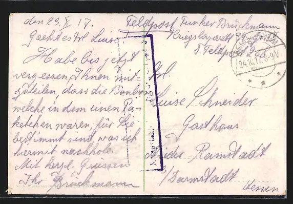 alte Ansichtskarte, gelaufen 1917, Eckknick oben re., guter Zustand